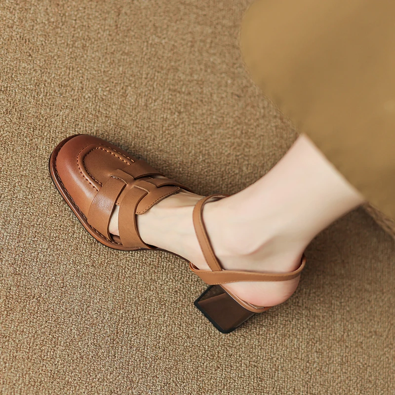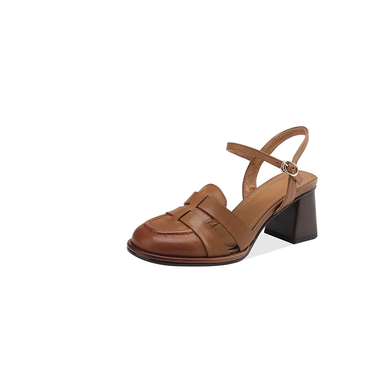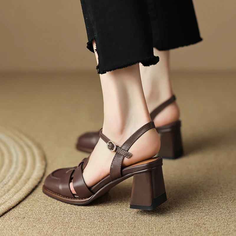 Discover the Retro Genuine Leather High Heel Sandals with Buckle