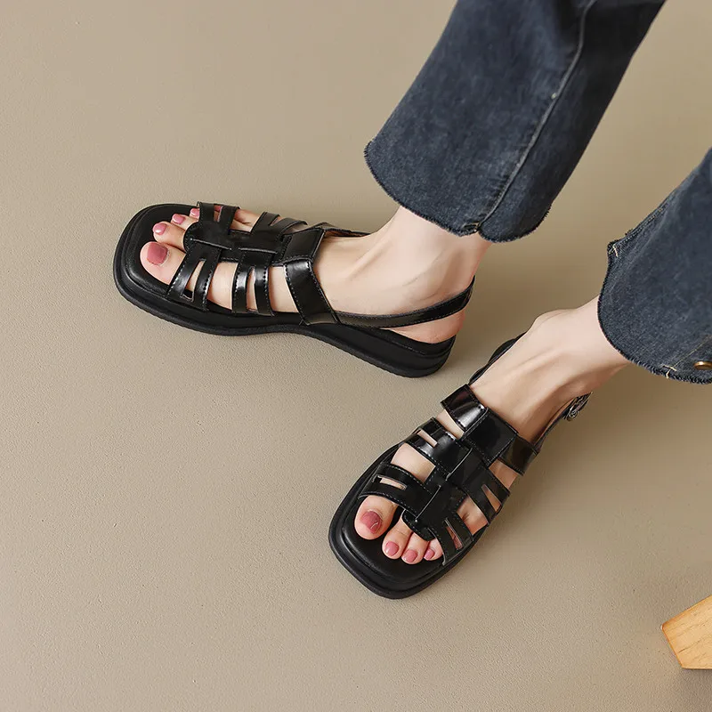 Discover the Retro Hollow Leather Summer Sandals