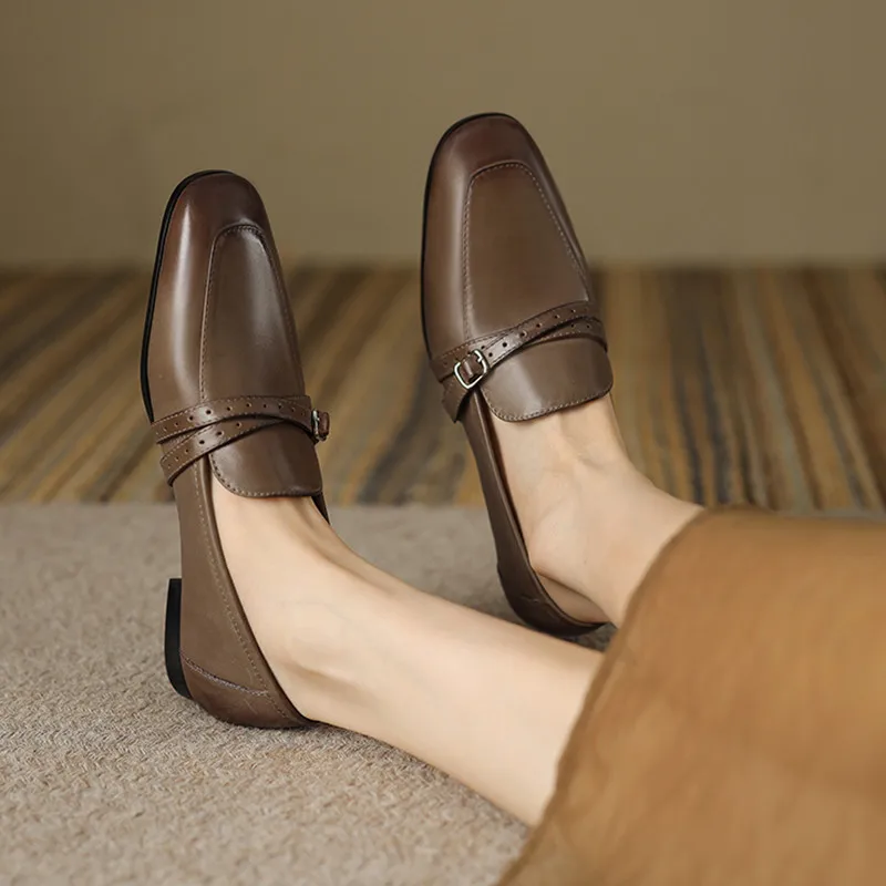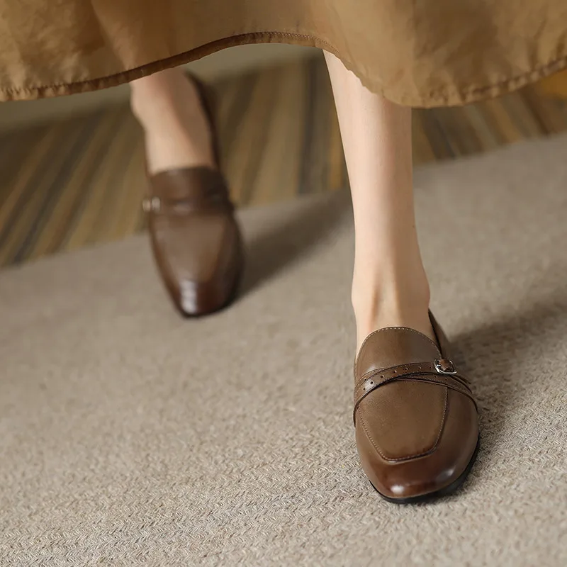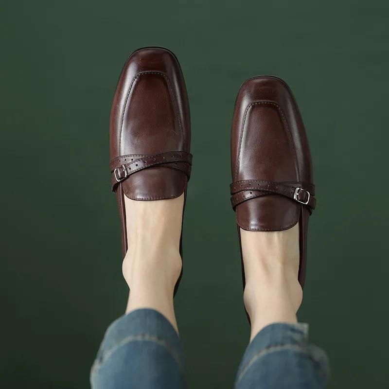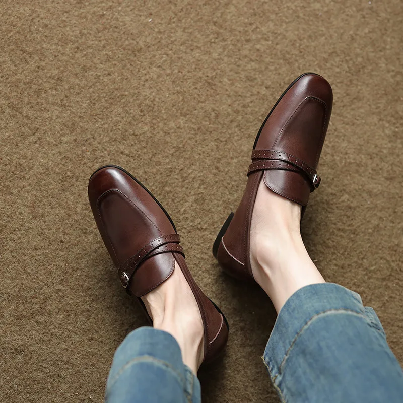 Retro leather low heels buckle loafers shoes