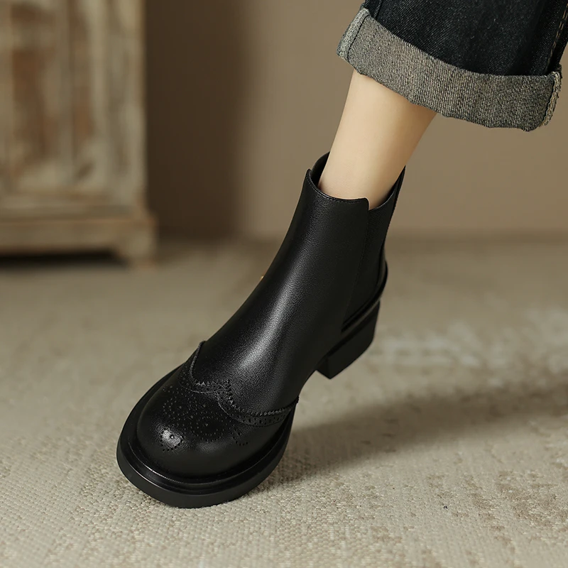 - These boots are made from high-quality genuine cow leather, ensuring durability and style.