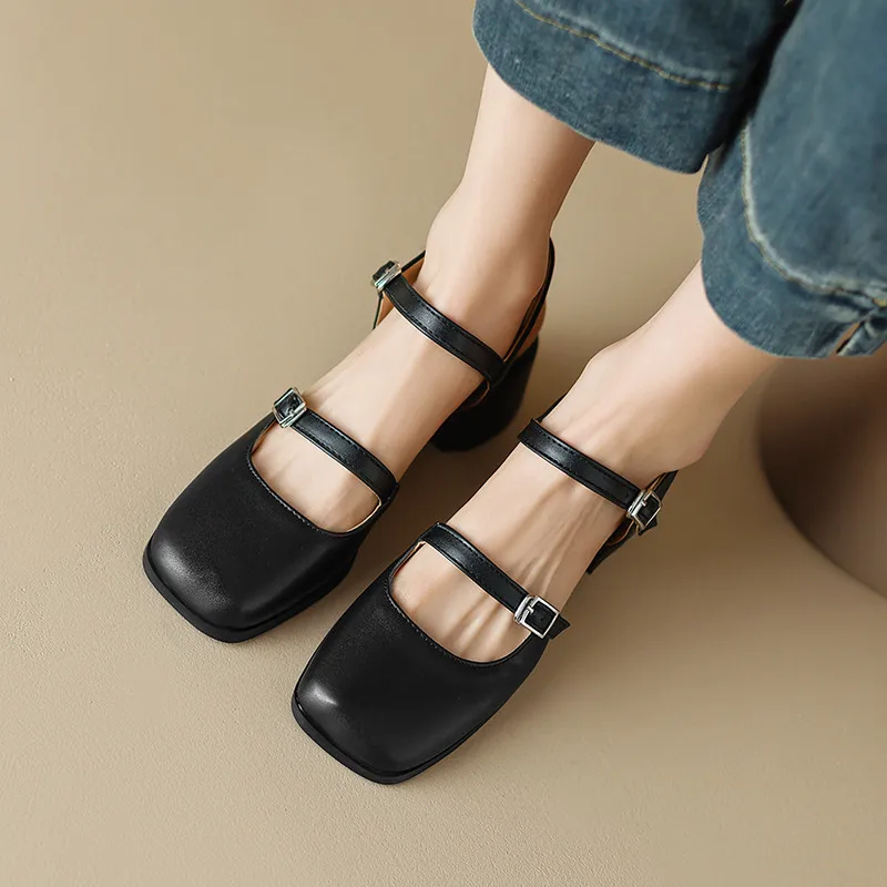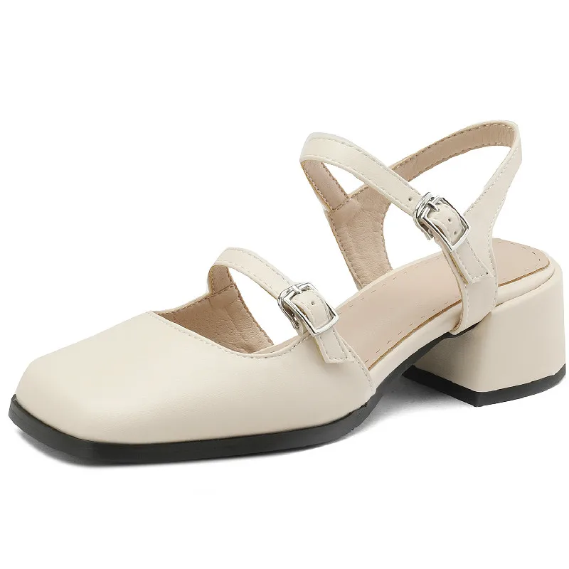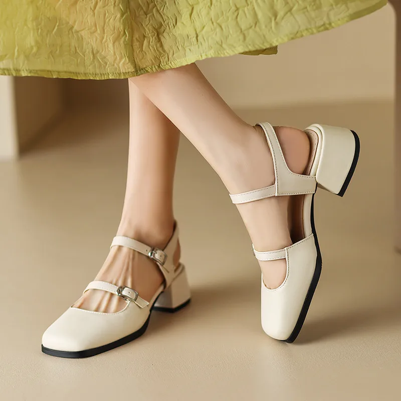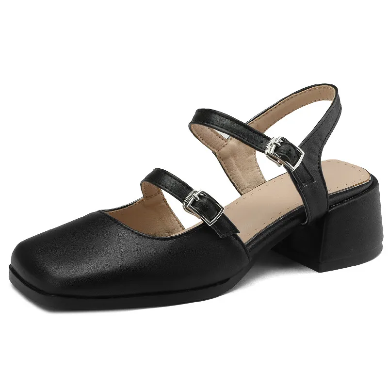 Retro Thick Heels Square Toe Sandals for Office and Casual Wear