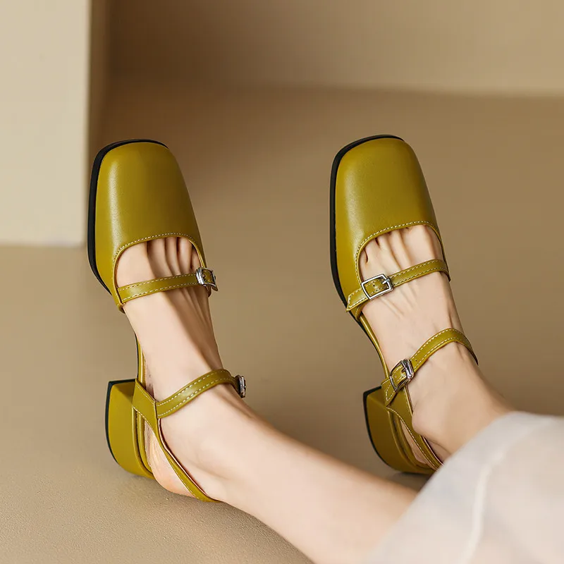 Retro thick heels square toe sandals for office and casual wear