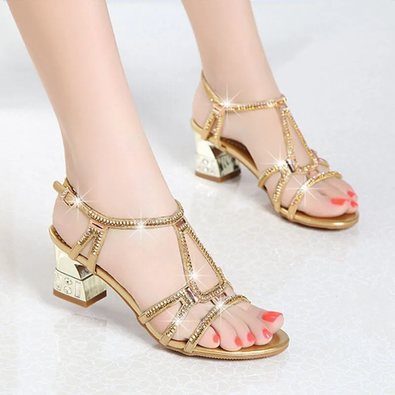 Rhinestone gladiator sandals open toe high heels