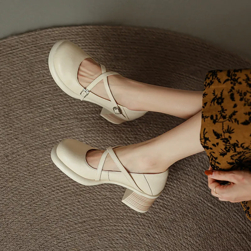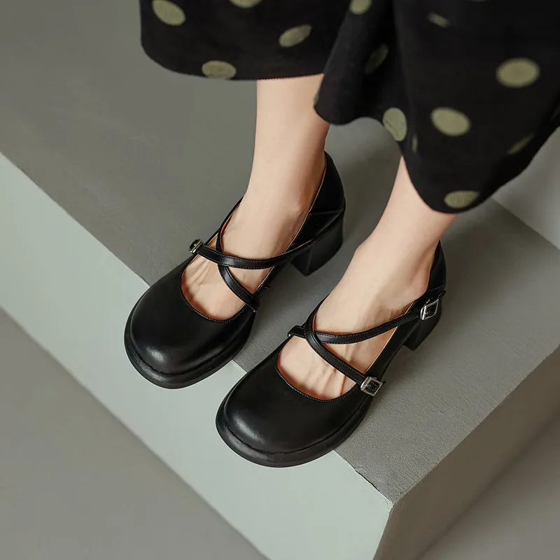 Discover the Elegance of Round Toe Leather Mary Janes with Thick Heels