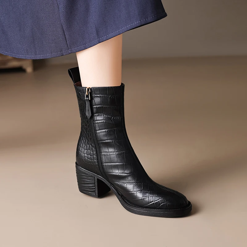 Sheepskin leather high heel ankle boots with zipper