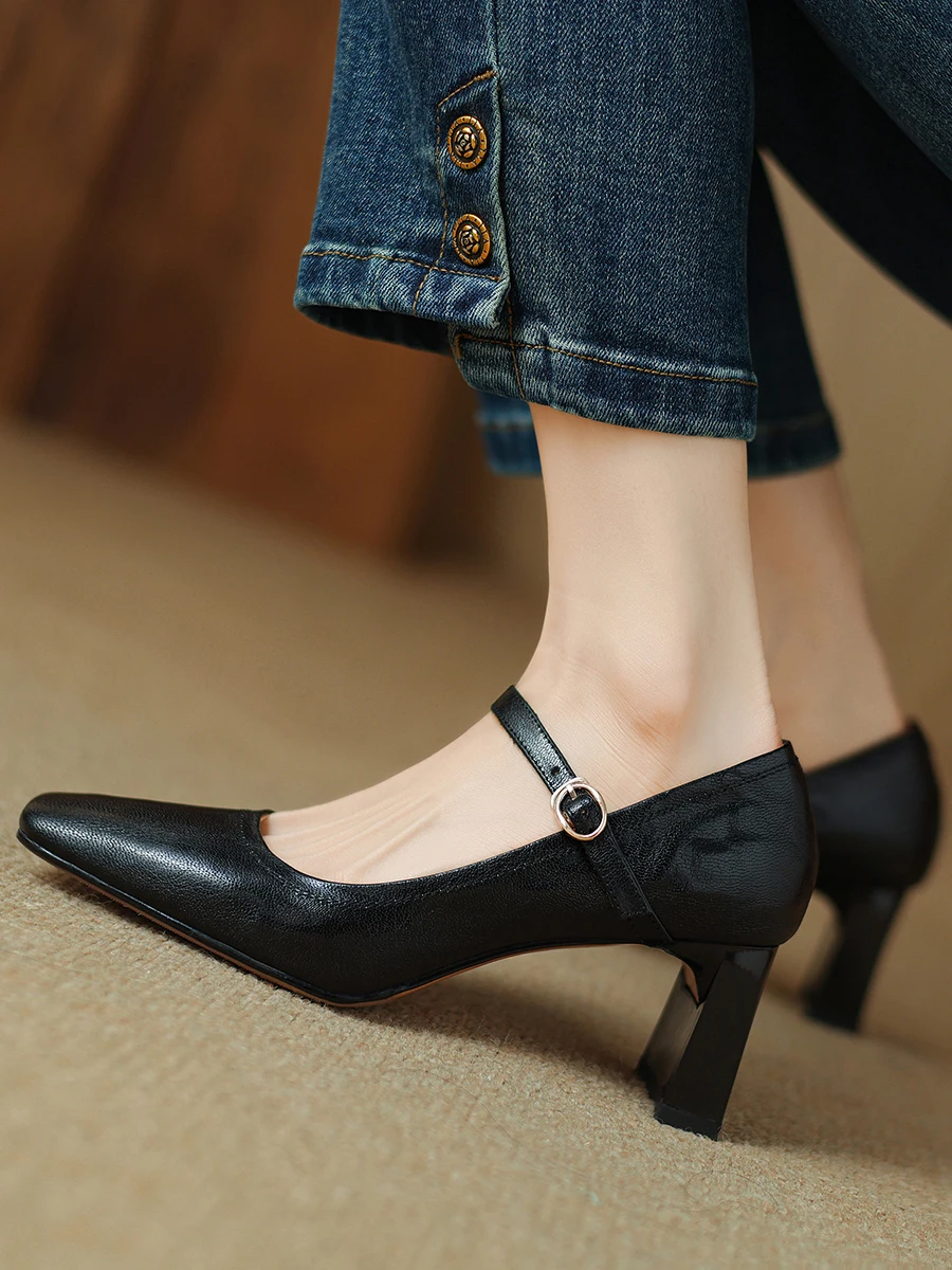 Step into elegance and comfort with our Sheepskin Leather Mary Jane Pumps. Designed for the modern woman, these pumps seamlessly blend style with practicality, making them the perfect choice for various occasions. The combination of genuine sheepskin leather and a sturdy square heel not only enhances your outfit but also provides the support your feet deserve. Whether you’re heading to work, shopping, or enjoying a night out, these chunky high-heeled pumps will keep you looking chic and feeling fabulous.