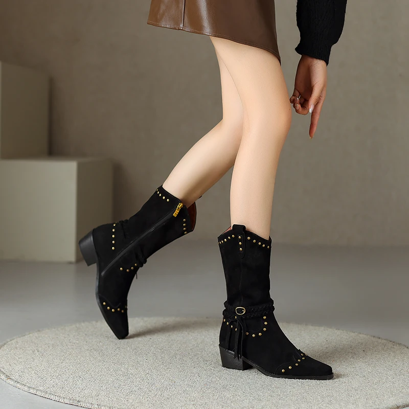 Discover the Ultimate in Style and Comfort: Square Toe Zipper Mid Calf Fringe Boots