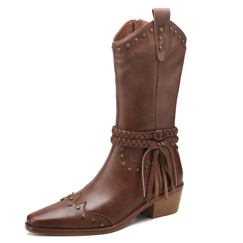 Step into a world of fashion and functionality with our Square Toe Zipper Mid Calf Fringe Boots. Crafted from genuine cow leather, these boots are designed to elevate your wardrobe while providing the comfort and durability you need for everyday wear. The unique fringe detailing and retro style make them a standout choice for any occasion, whether you’re heading out for a casual day or dressing up for a night out.