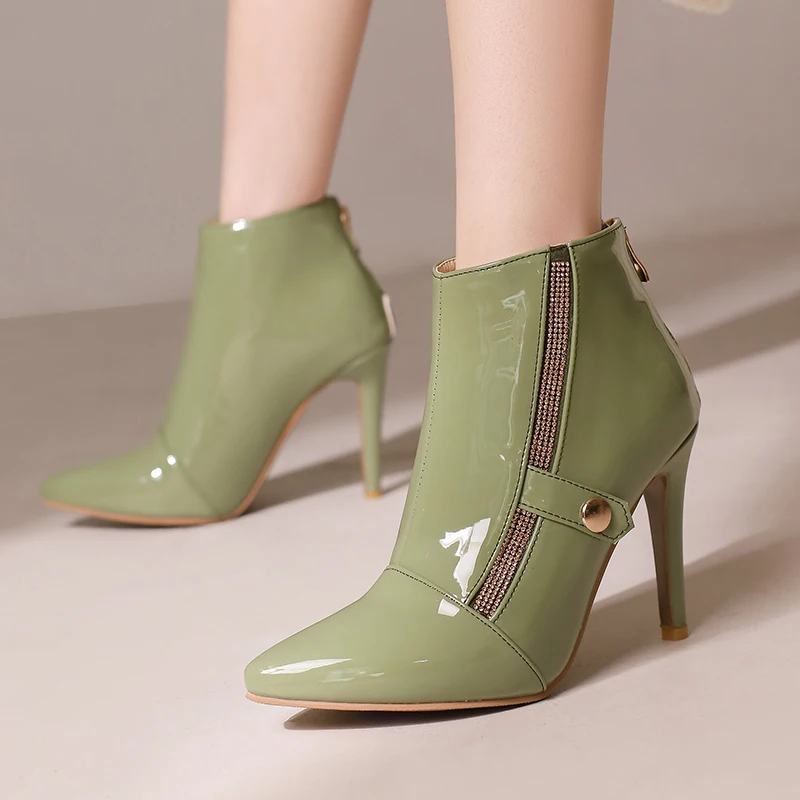 Stiletto ankle boots patent leather heels