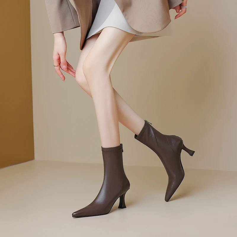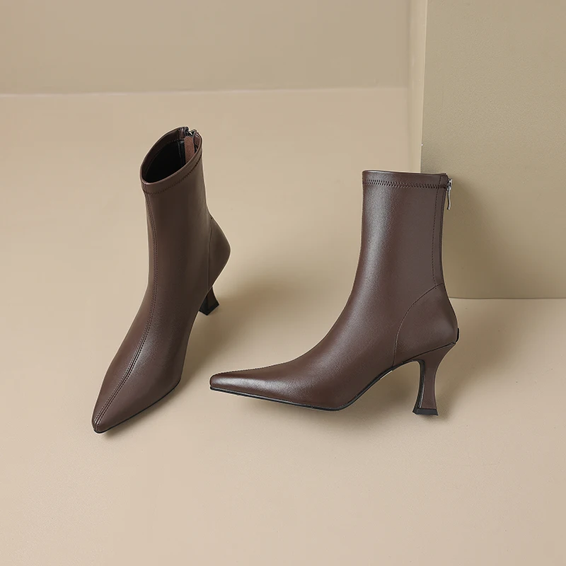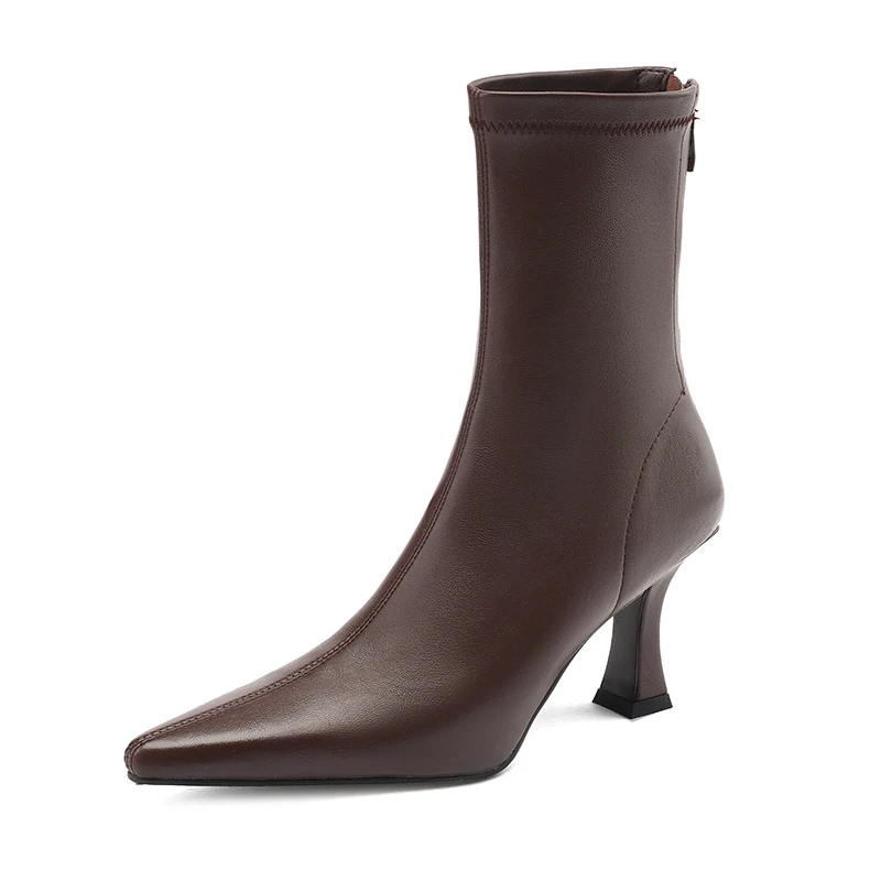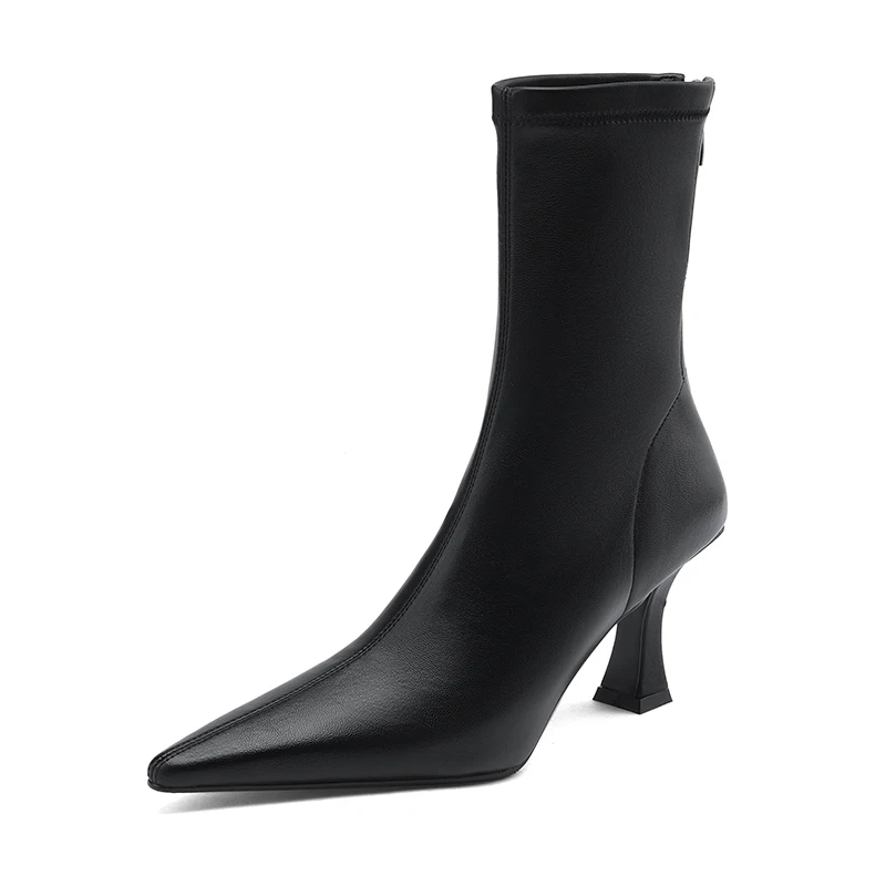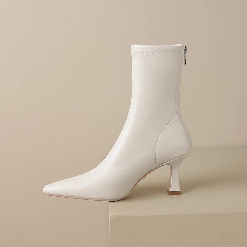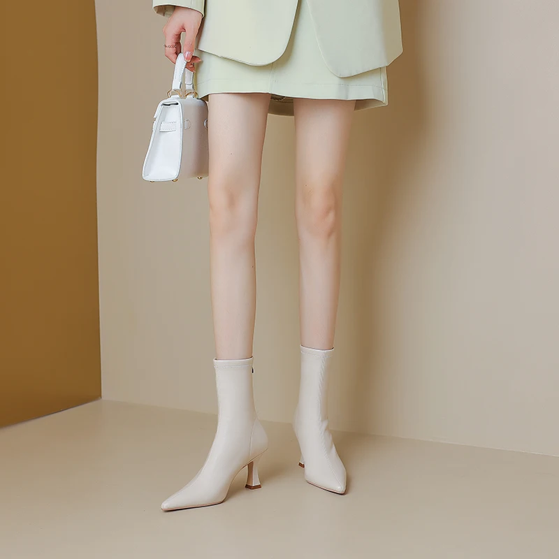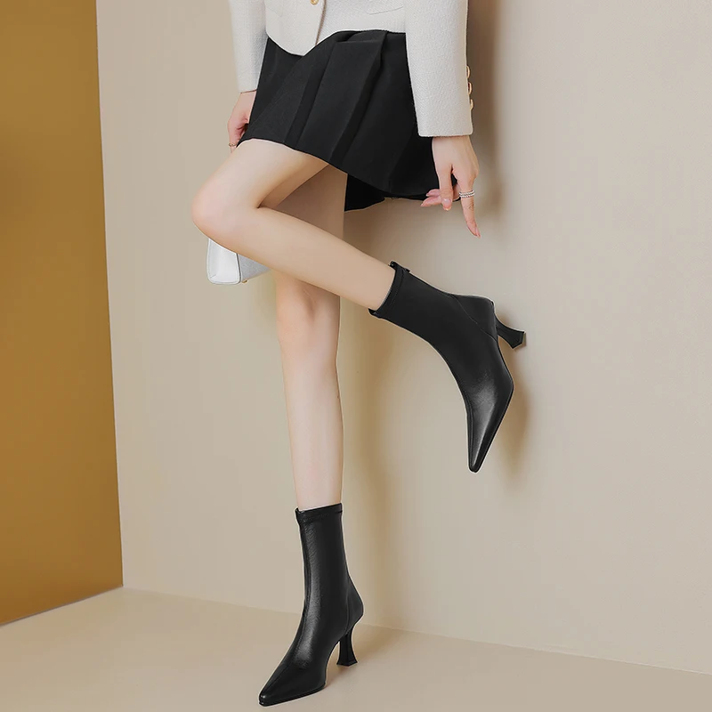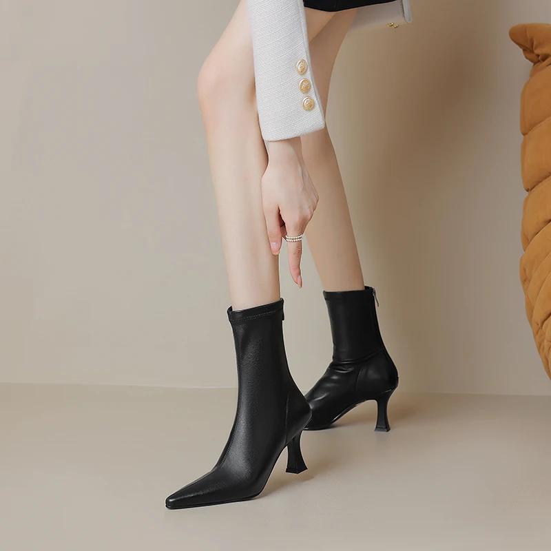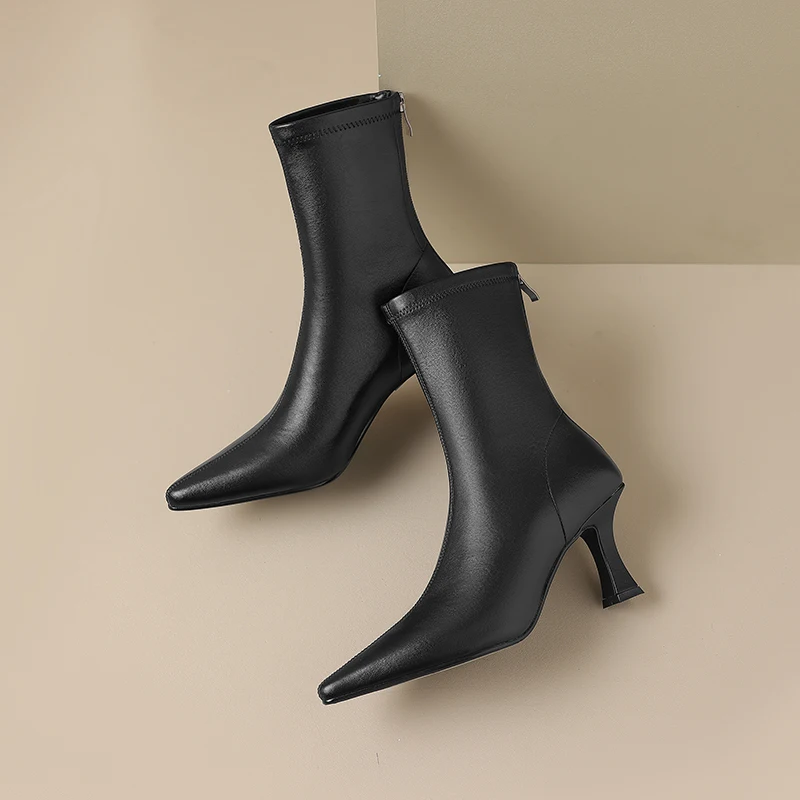 Introducing the ultimate blend of elegance and comfort: the Stretch Fabric Ankle Boots with High Heels and a Pointed Toe. Perfectly crafted for the modern woman, these boots are designed to provide both style and functionality. Whether you’re heading to a casual outing or a formal event, these ankle boots will elevate your look while ensuring comfort throughout the day.