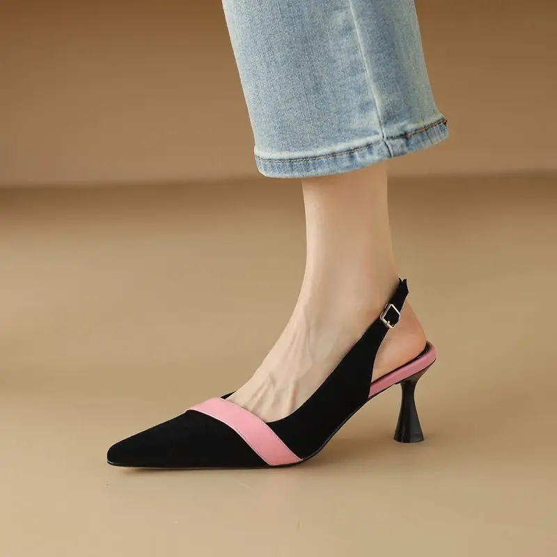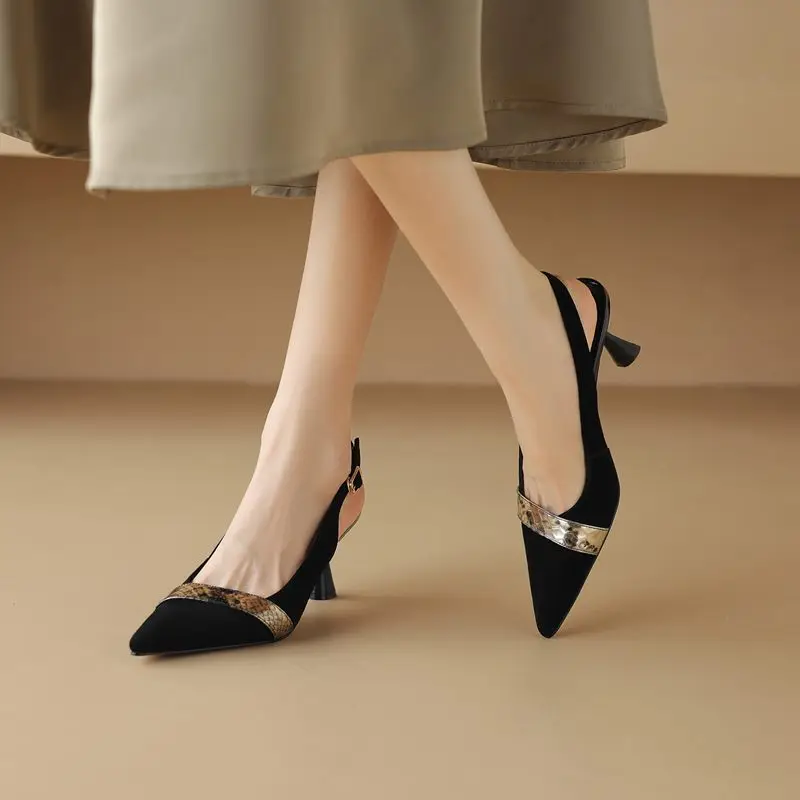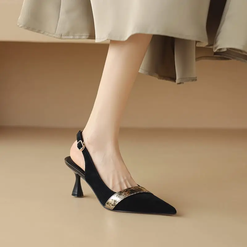 Discover the Elegance with Suede Leather Pointed Toe Slingback Pumps