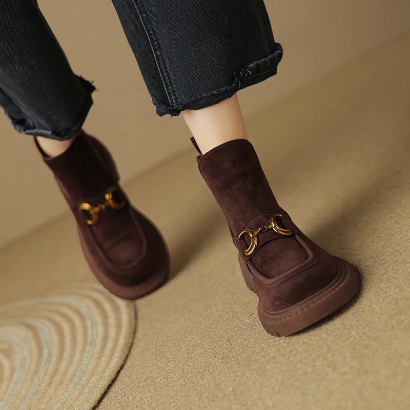 Discover the Elegance of Our Suede Leather Slip-On Ankle Boots