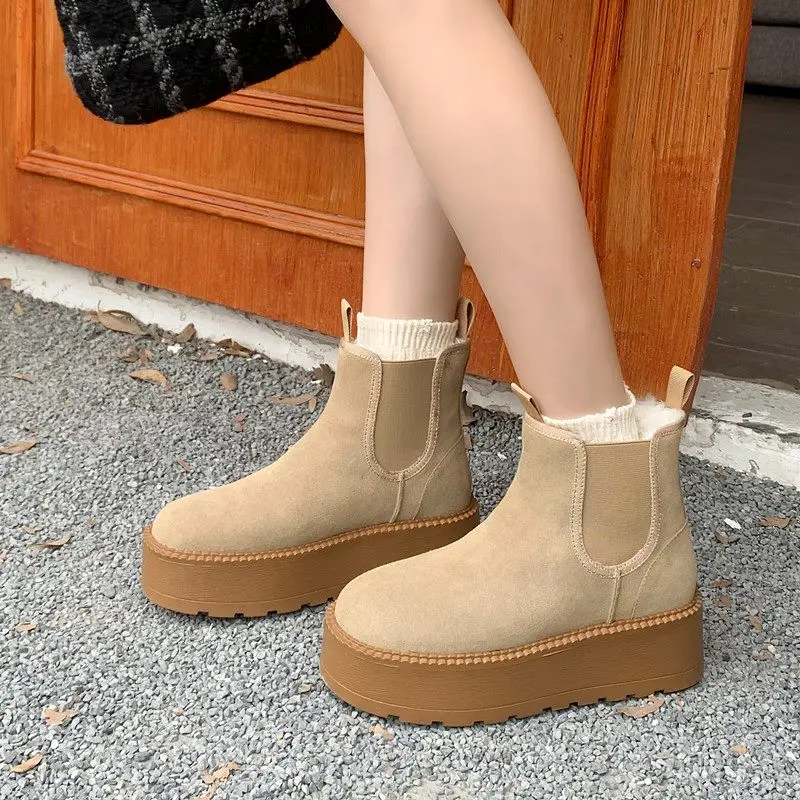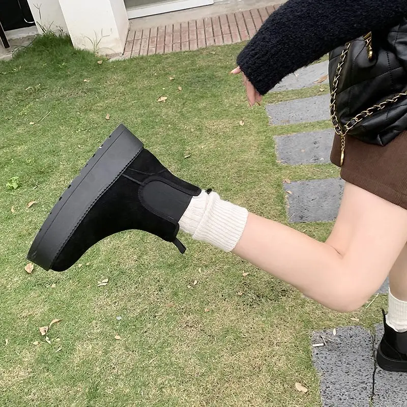 Suede slip-on snow boots with thick platform and wool blend