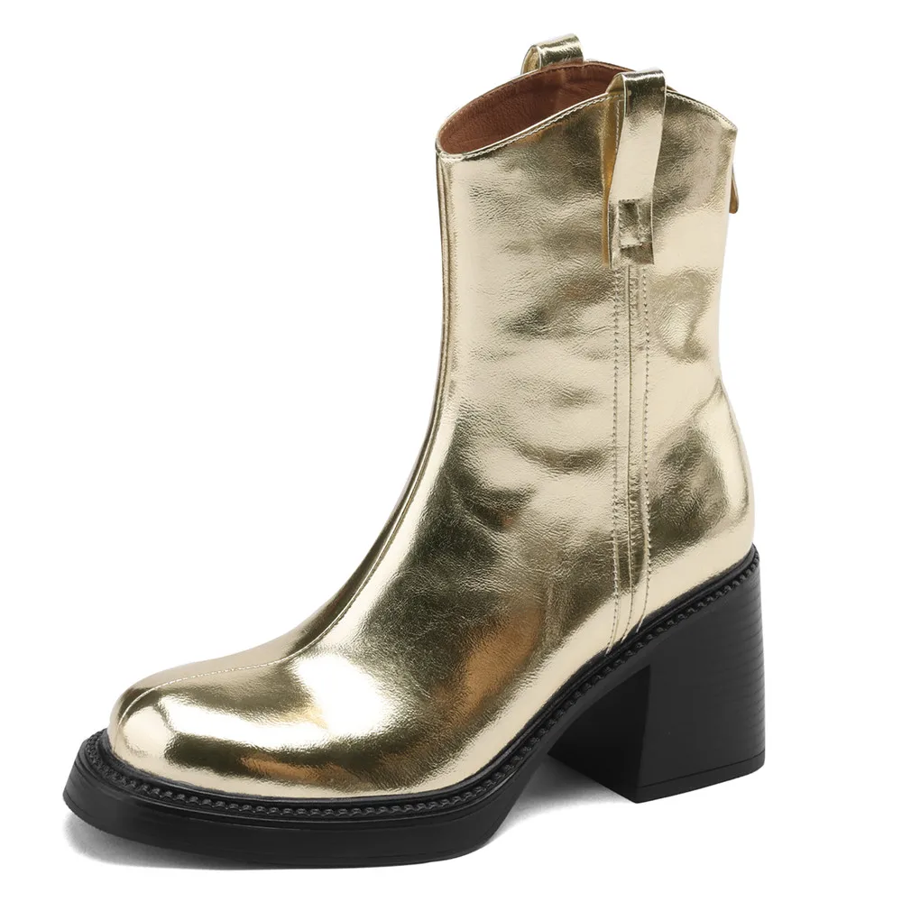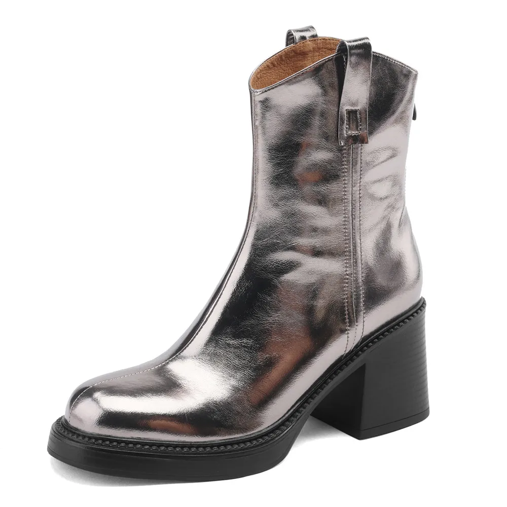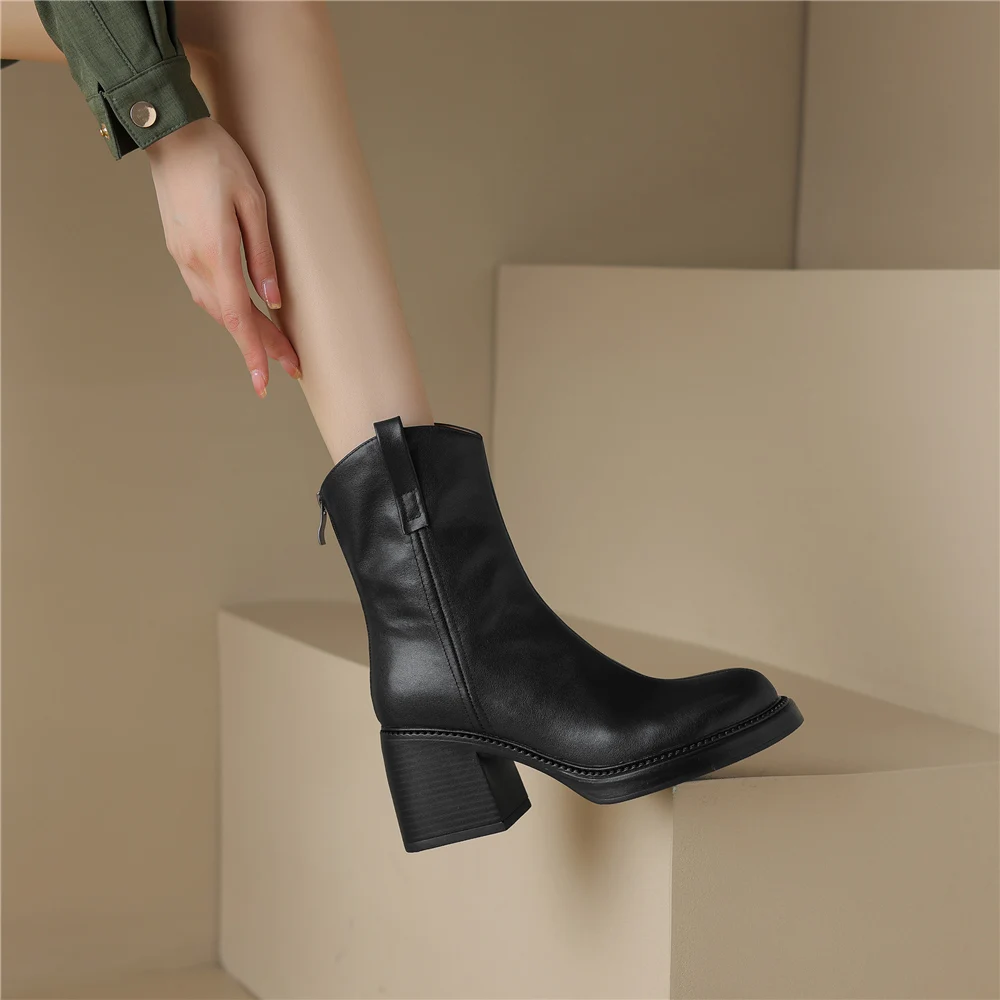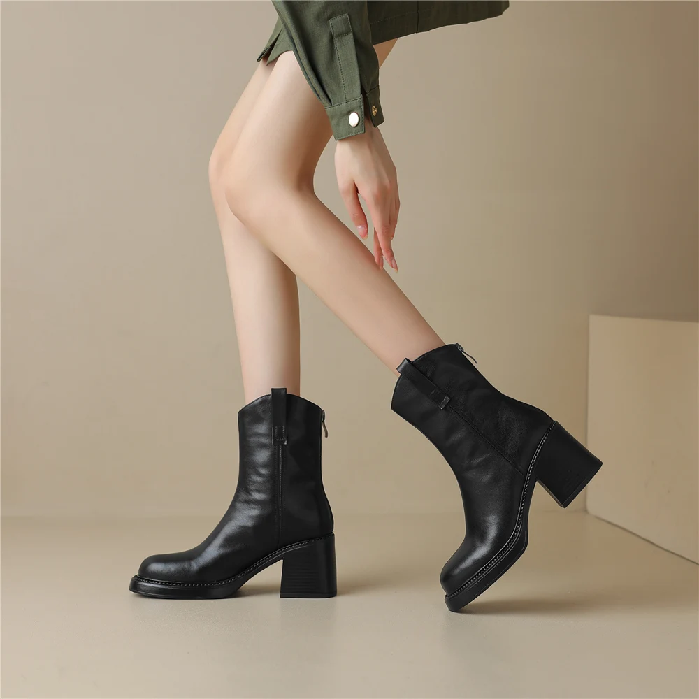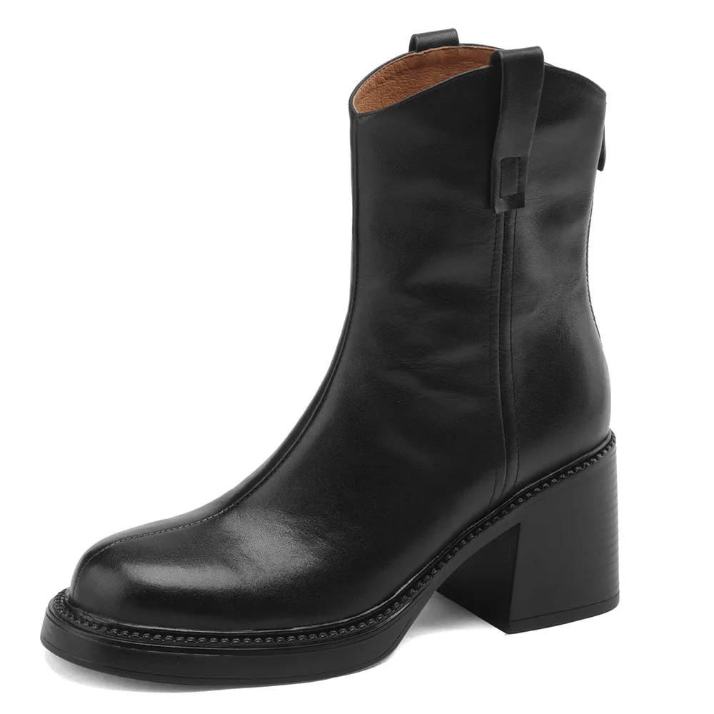 Thick High Heel Ankle Boots – Leather Back Zipper