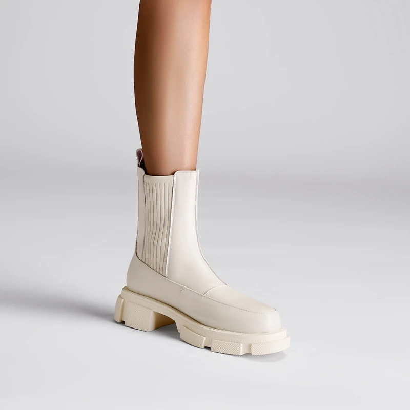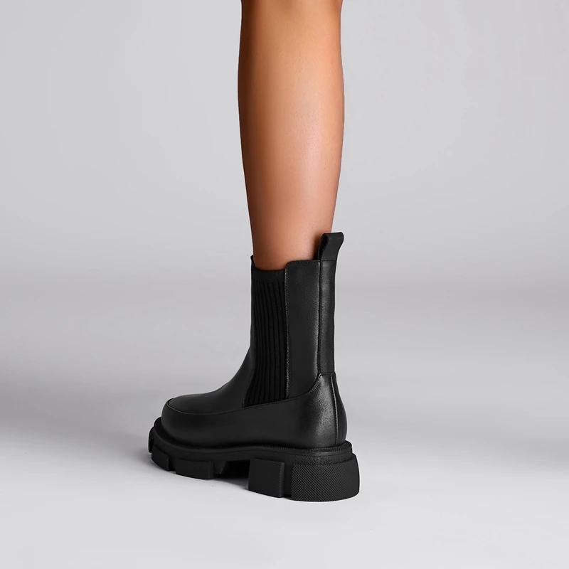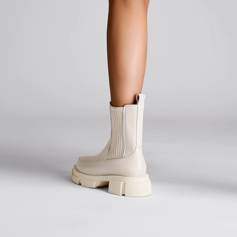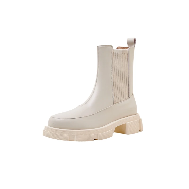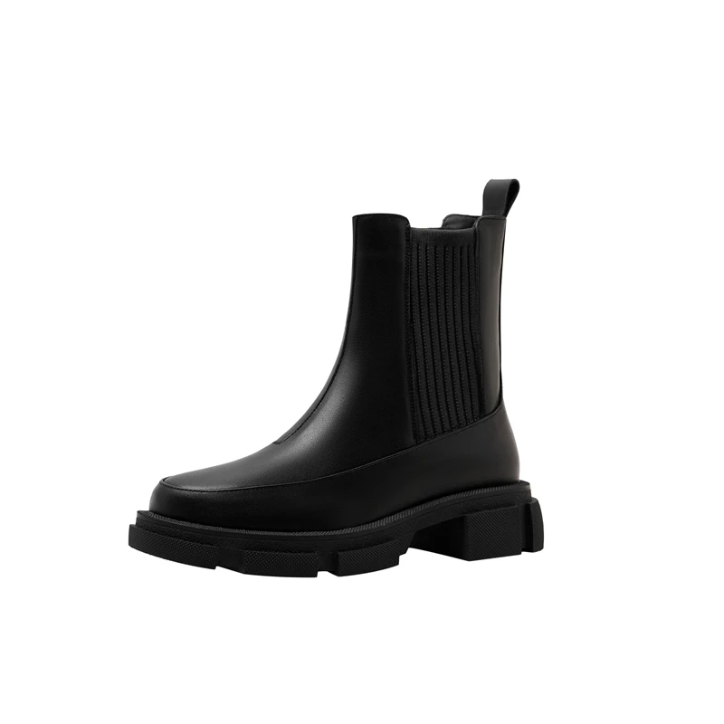 Thick sole cowhide short boots