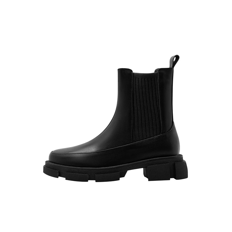 Thick Sole Cowhide Short Boots