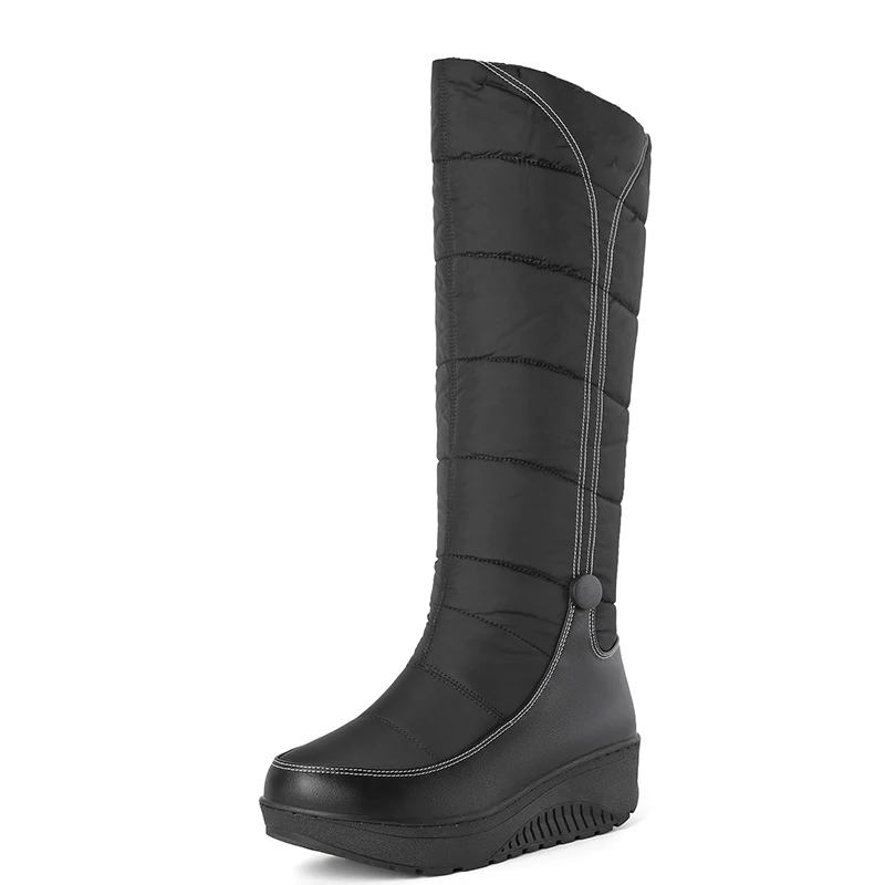 Thick sole waterproof knee-high snow boots with plush lining
