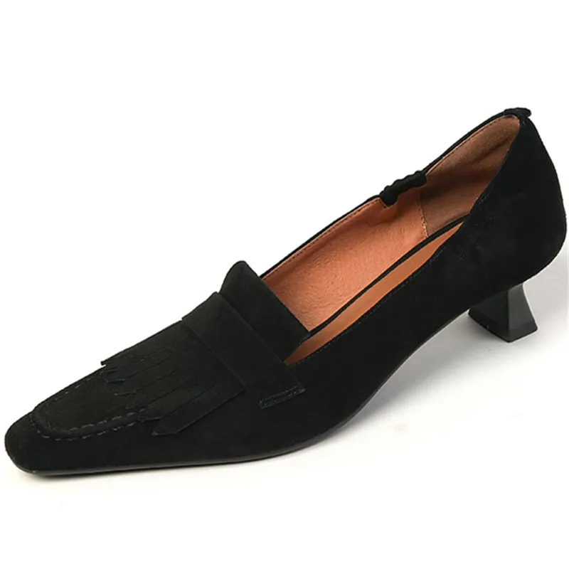 Step into elegance and comfort with our stunning Vintage Slip-On Suede Heels featuring a chic square toe design. Crafted for the modern woman, these heels blend vintage aesthetics with contemporary style, making them the perfect addition to your wardrobe. Whether you’re heading to the office or enjoying a night out, these heels will elevate your outfit while providing all-day comfort.