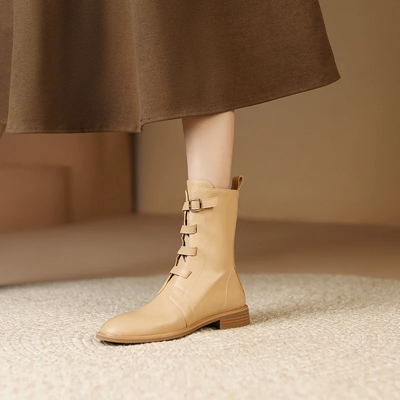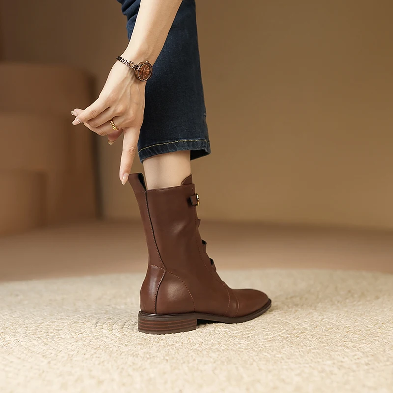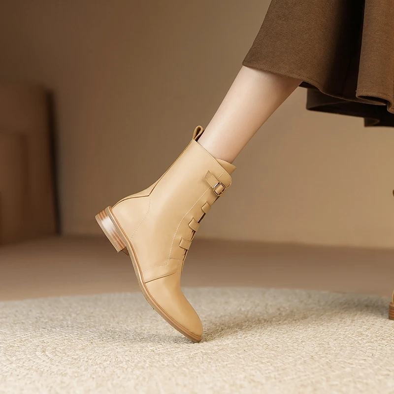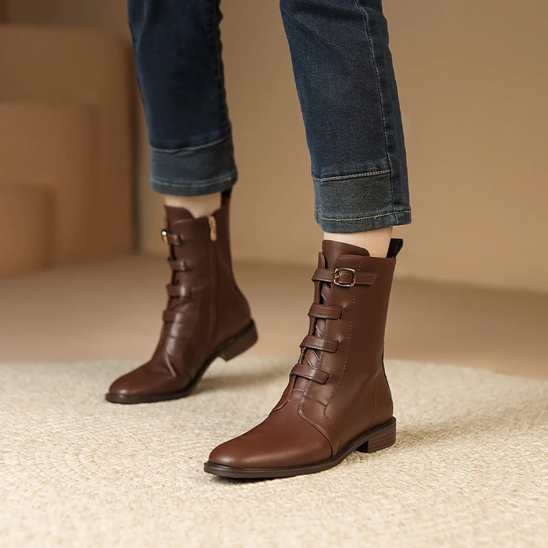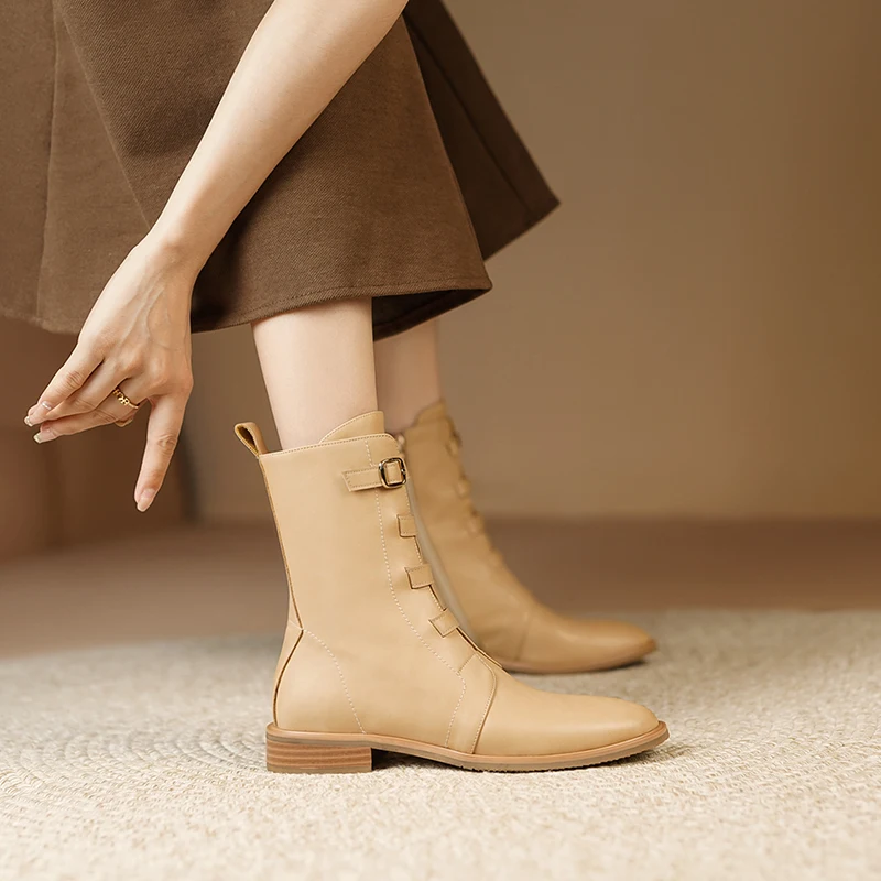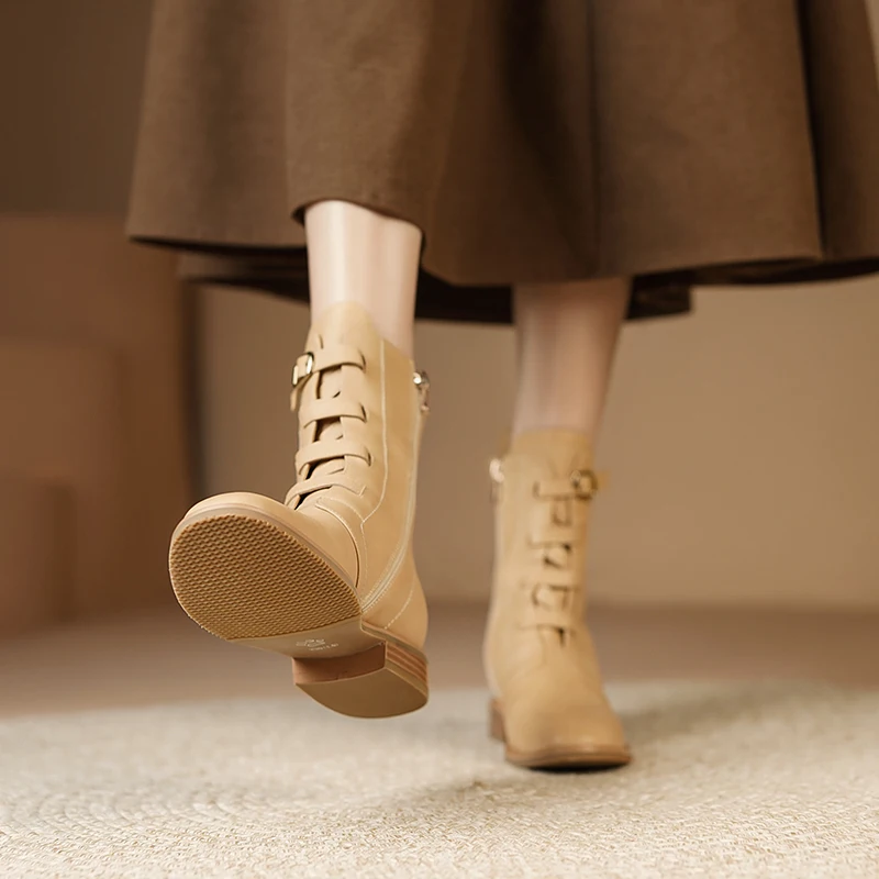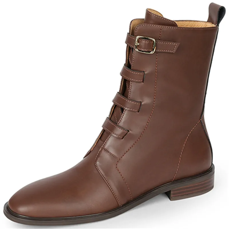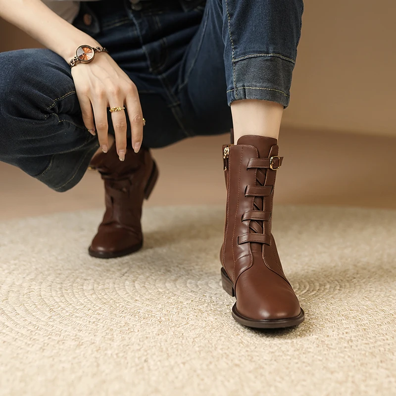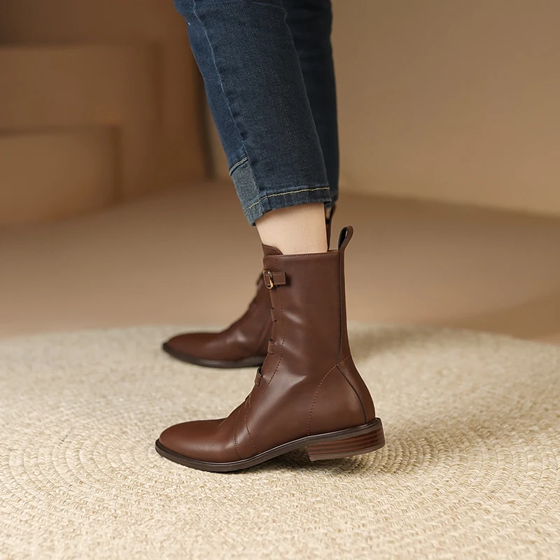 Discover the Vintage Square Low Heels Leather Ankle Boots