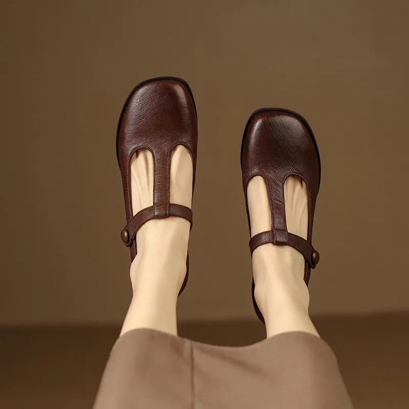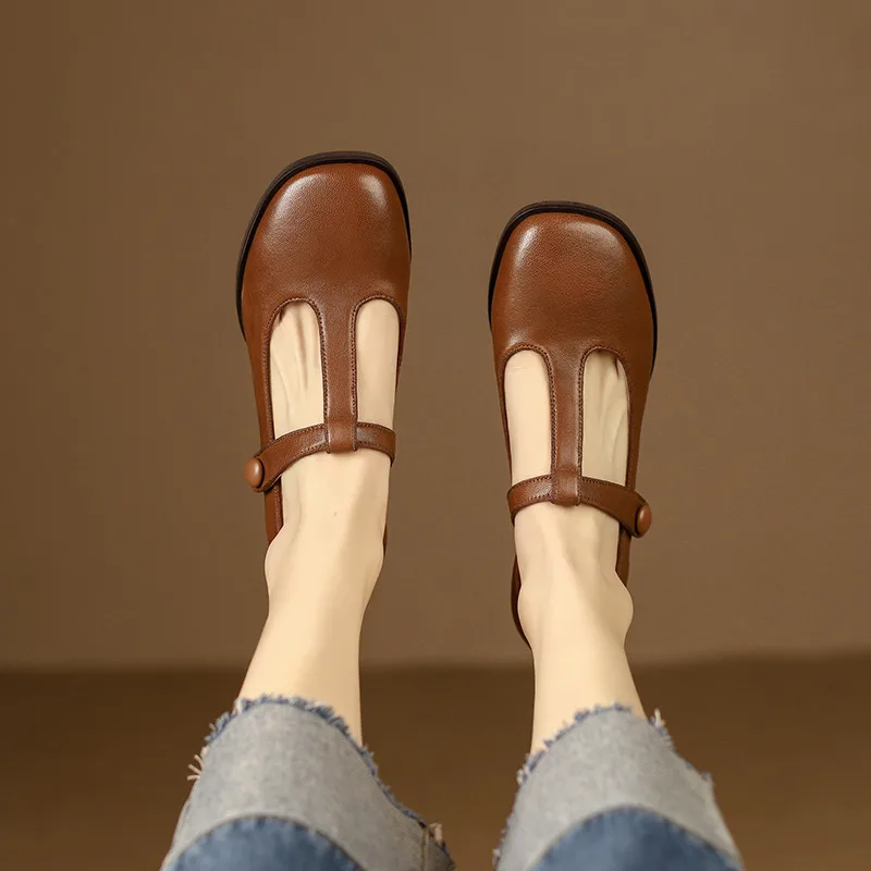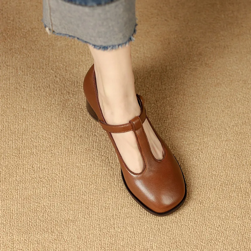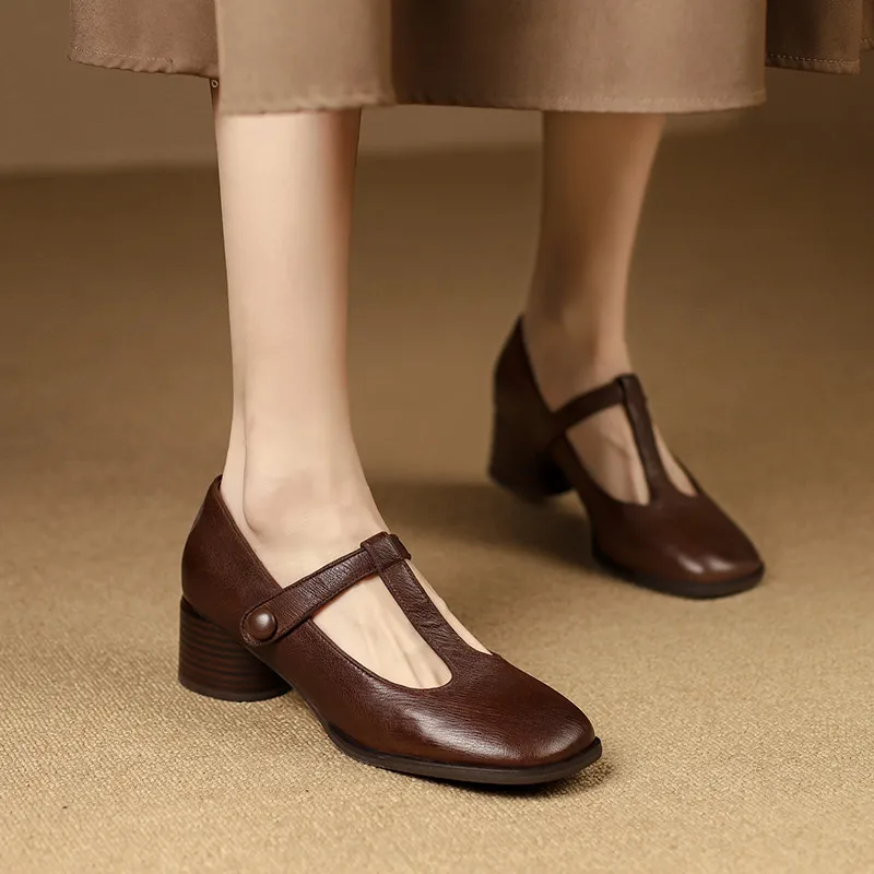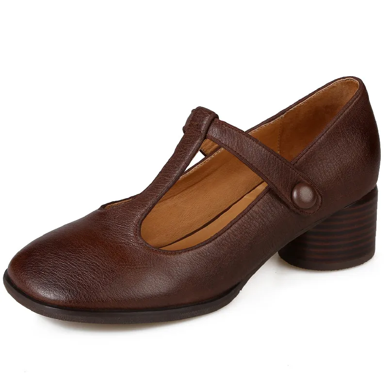 Discover the Charm of Vintage T-Strap Leather Heels Mary Jane Pumps