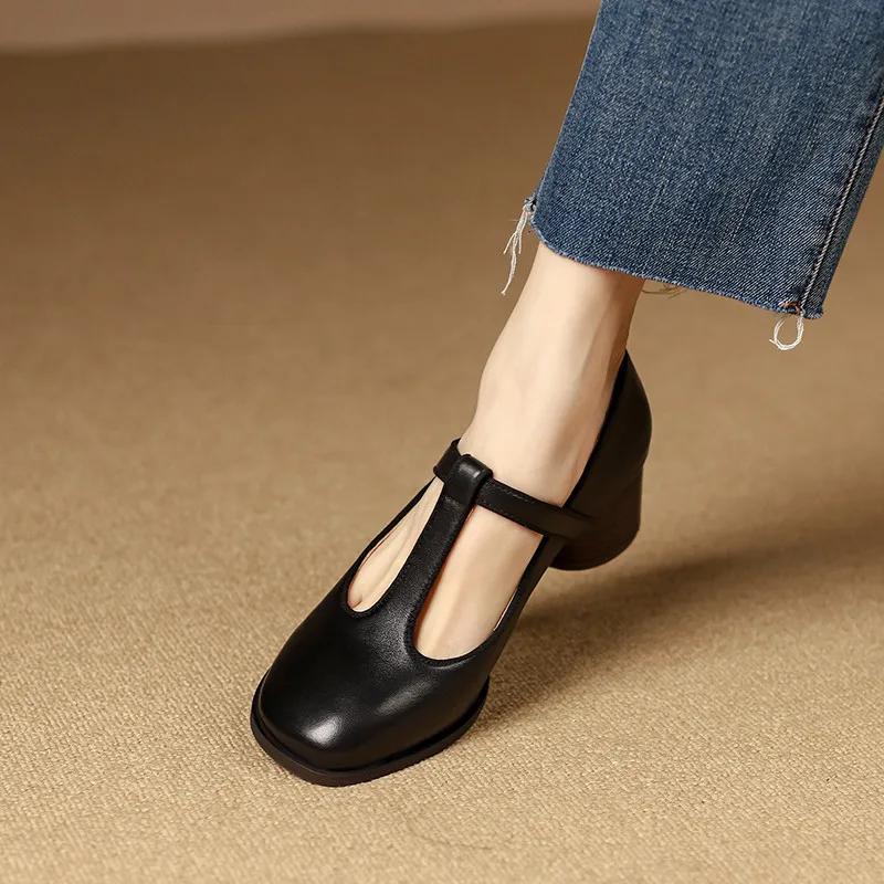 Step into elegance with our Vintage T-Strap Leather Heels Mary Jane Pumps. These stunning shoes combine classic retro style with modern comfort, making them the perfect addition to any woman’s wardrobe. Crafted from high-quality genuine leather and designed to enhance your natural beauty, these pumps are ideal for both casual outings and professional settings.