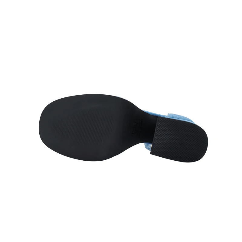 Waterproof platform buckle denim high heel sandals