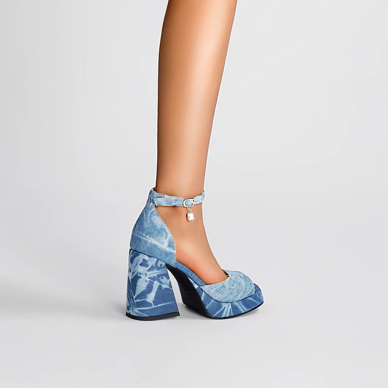 Discover the Elegant Waterproof Platform Buckle Denim High Heel Sandals