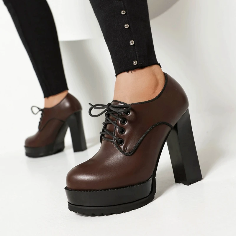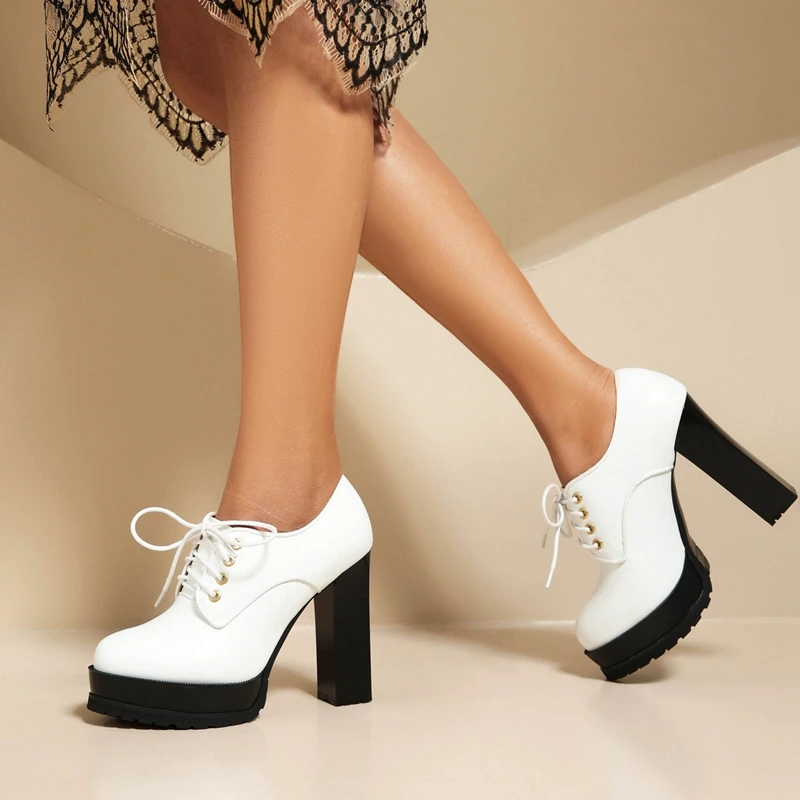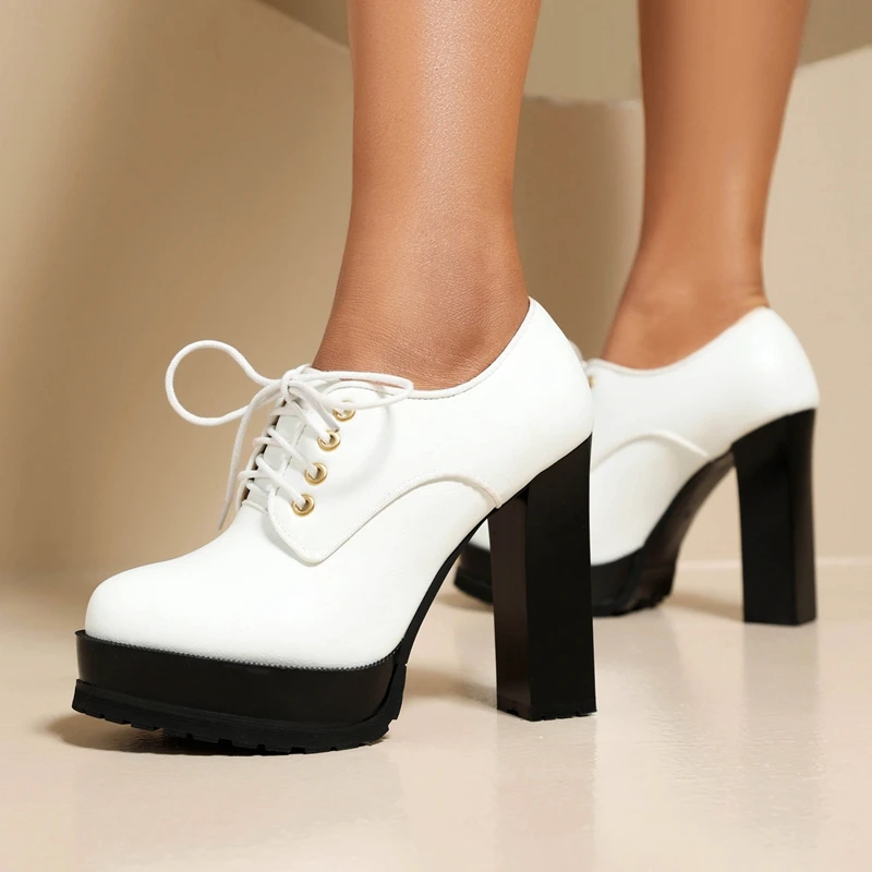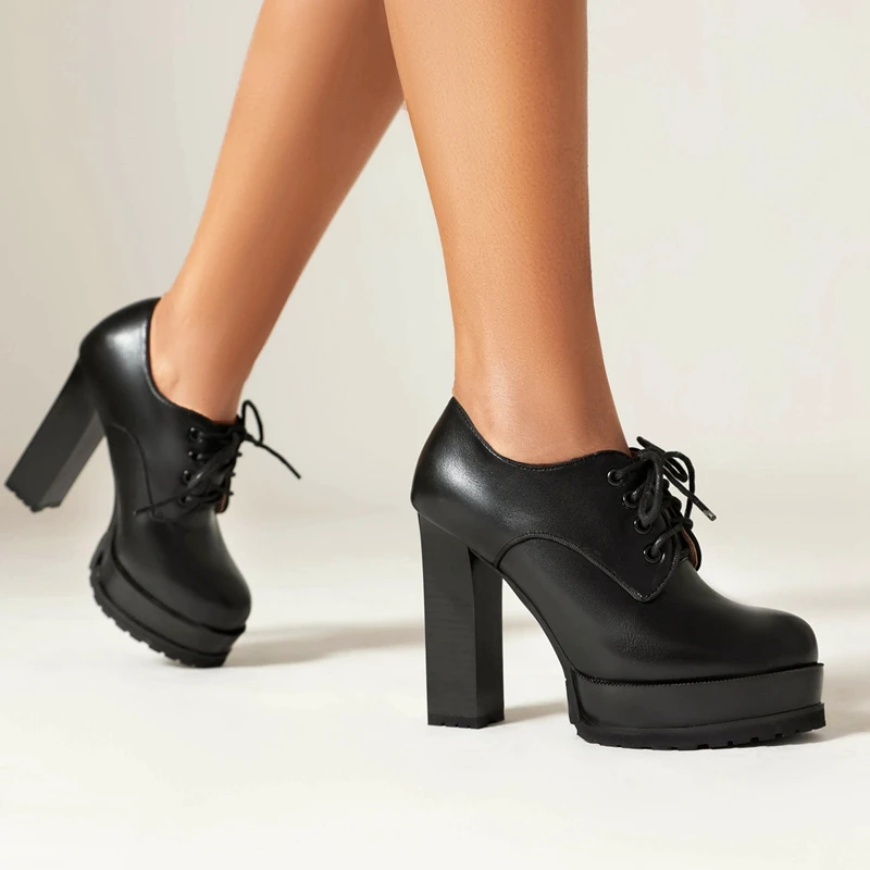 Discover the Perfect Blend of Style and Comfort with Our Waterproof Platform Lace-Up High Heels