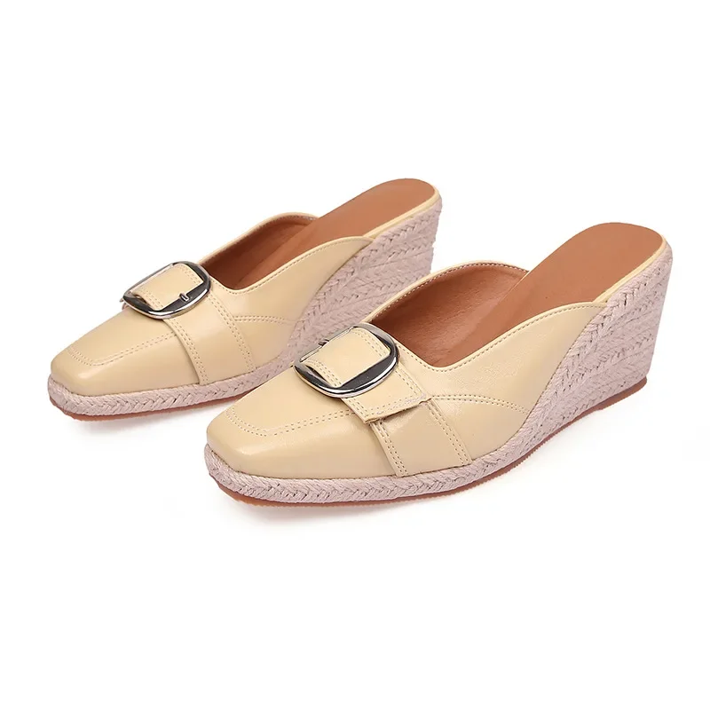 Step into summer with the chic and comfortable wedge sandals designed for the modern woman. These stylish sandals feature a unique hemp rope outsole that not only adds a touch of bohemian flair but also ensures durability and support for all-day wear. Perfect for outdoor adventures or casual outings, these sandals bring together fashion and functionality seamlessly.
