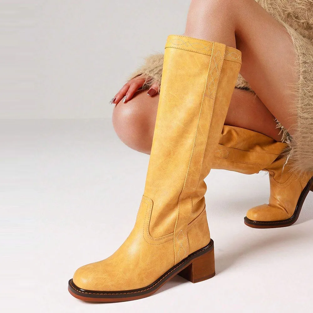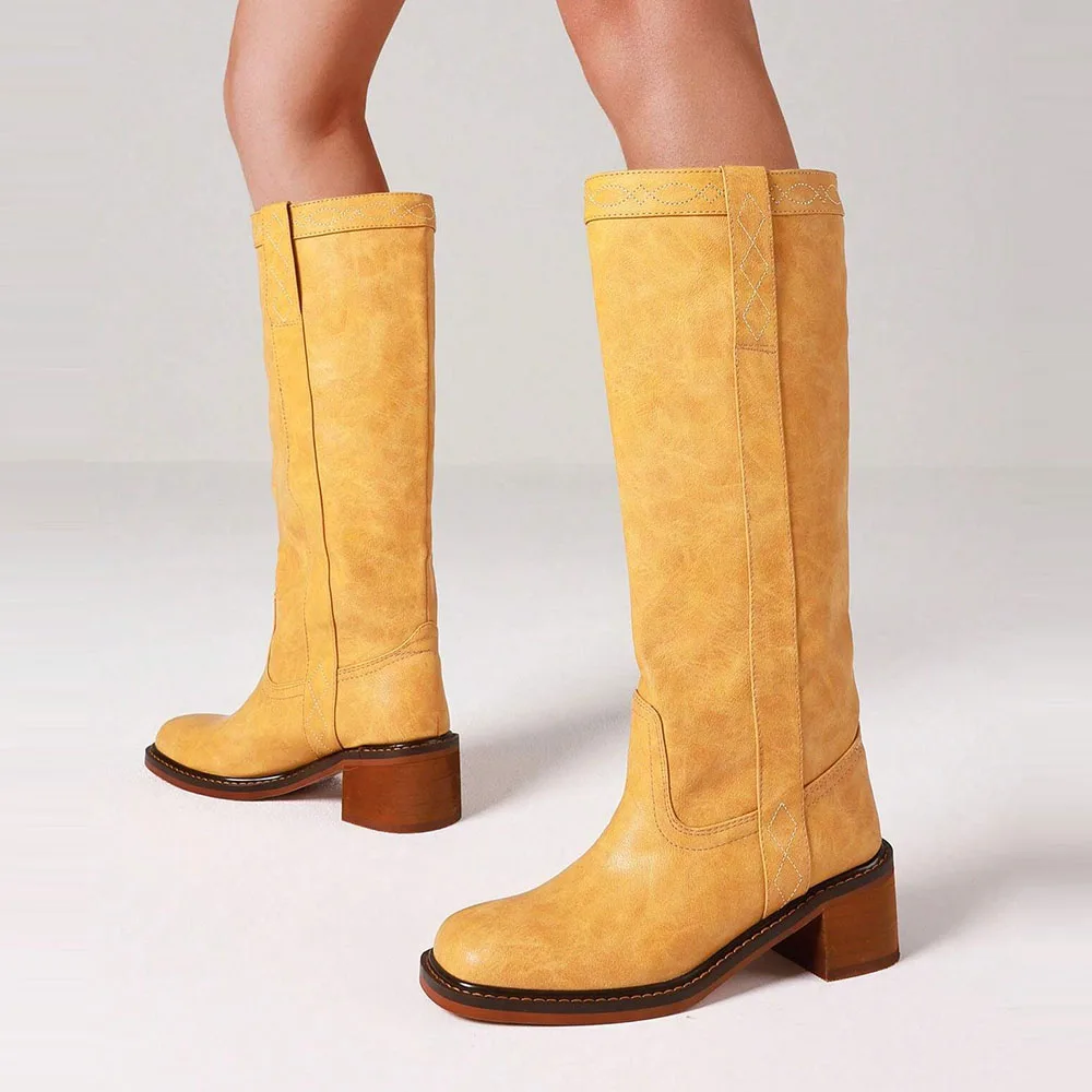 Discover the Allure of Our Wide Calf Western Boots with Chunky Heel