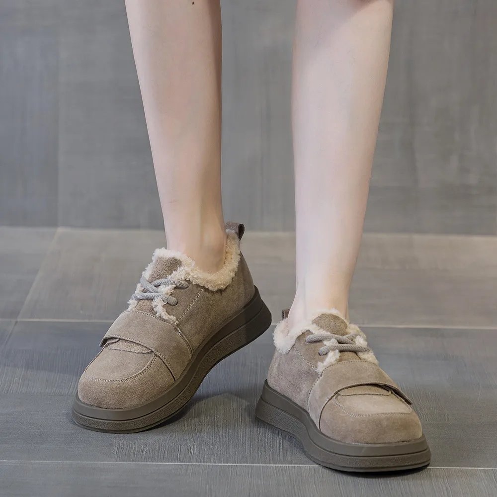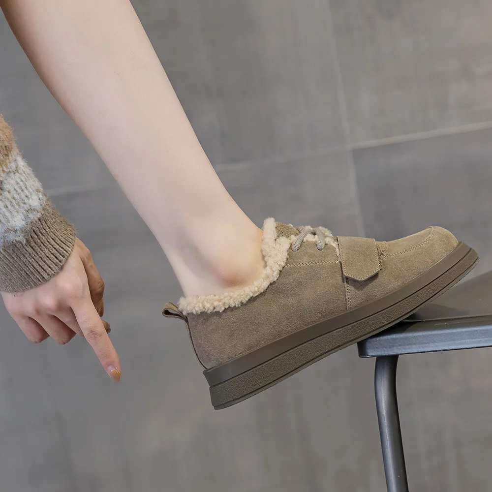 Introducing the perfect blend of comfort and style for your winter wardrobe: the Wool Lined Leather Round Toe Flats. These flats are designed to keep your feet cozy while ensuring you look chic during casual outings. With their elegant round toe and soft suede upper, they are the ideal choice for any occasion, seamlessly transitioning from day to night.