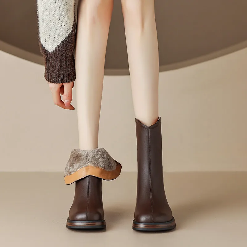 Step into style and comfort this winter with our exquisite Wool Winter Ankle Boots. Designed to elevate your winter wardrobe, these boots combine fashion and functionality, making them the perfect choice for chilly days. The thick heels provide stability and support, while the sleek zipper detail adds a touch of elegance. Whether you’re heading to work, running errands, or enjoying a night out, these boots will keep you warm and stylish.